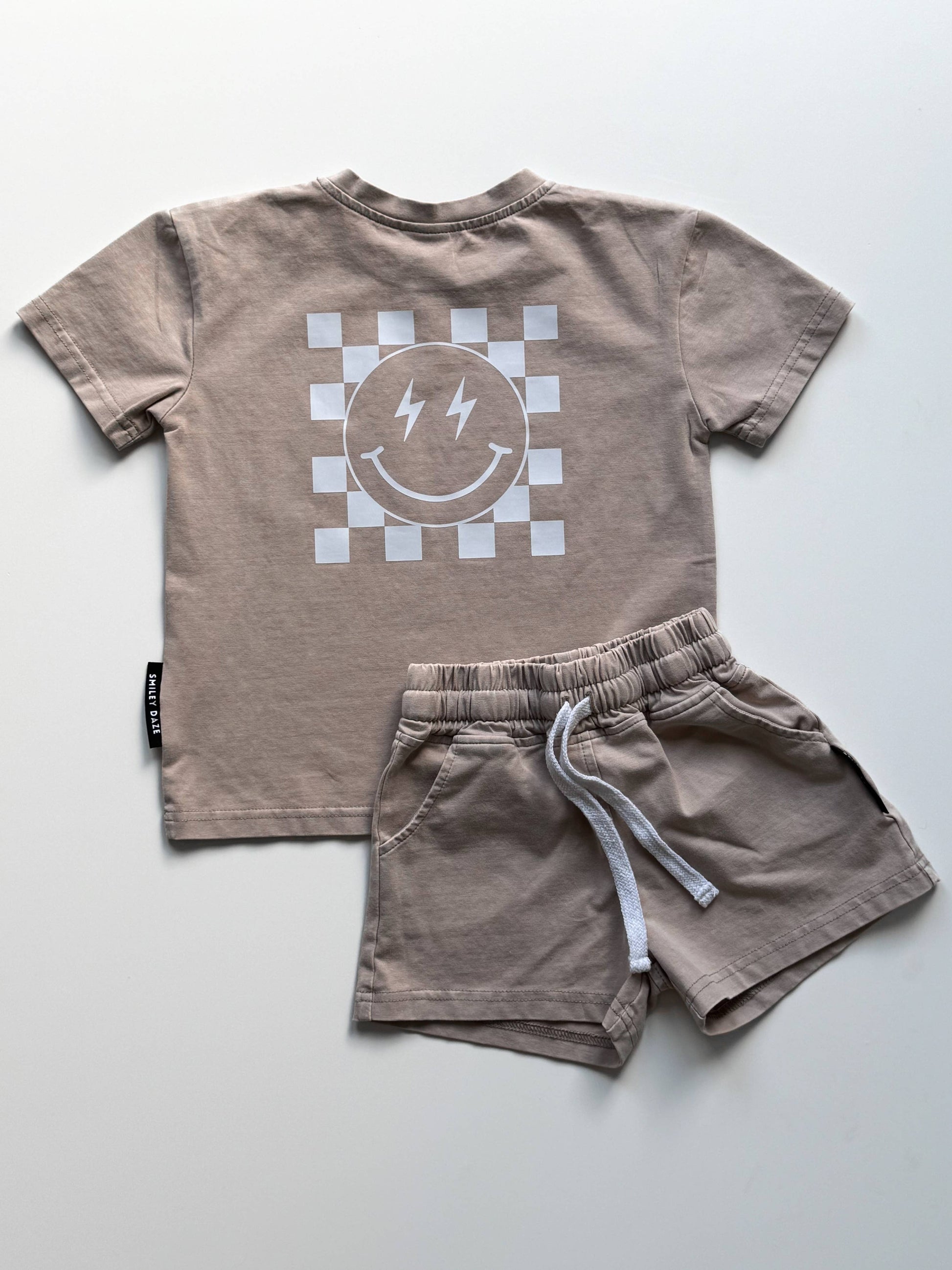 Unleash your child's inner cool with this shorts set. The acid wash will add a fun and unique touch to their wardrobe. Perfect for a playful and carefree style, this set is sure to bring a smile to their face (pun intended).